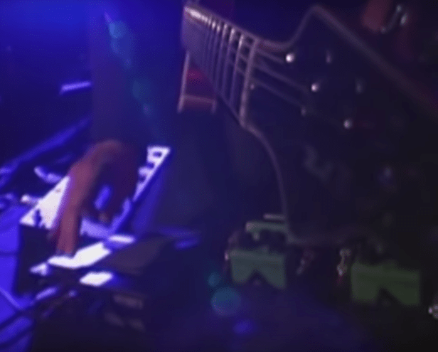Here’s the full rig. Note the Deluxe at right is mic’d, while the one center is not; it’s used as a head that runs to the Bruno 4×12. It looks like Trey is still mic’ing with the AKG 414’s at this point.