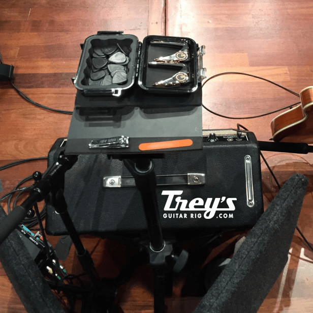 Below you can see Trey’s G7th Performance capos, his Adamas Graphite Picks, and his nail clippers and file.