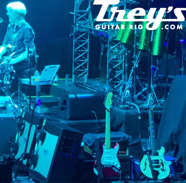 The Ambikabs are wet-dry rigs-in-a-box with their own effects loops with separate 10″ speakers. The 12″ speakers are Celestion Heritage 65’s. Trey is using customized Keeley Eccos pedals for reverb and delay functions in all Ambikabs. There were 2 Ambi’s out front and a 3rd connected to the Komet 60 facing rear as a backup.